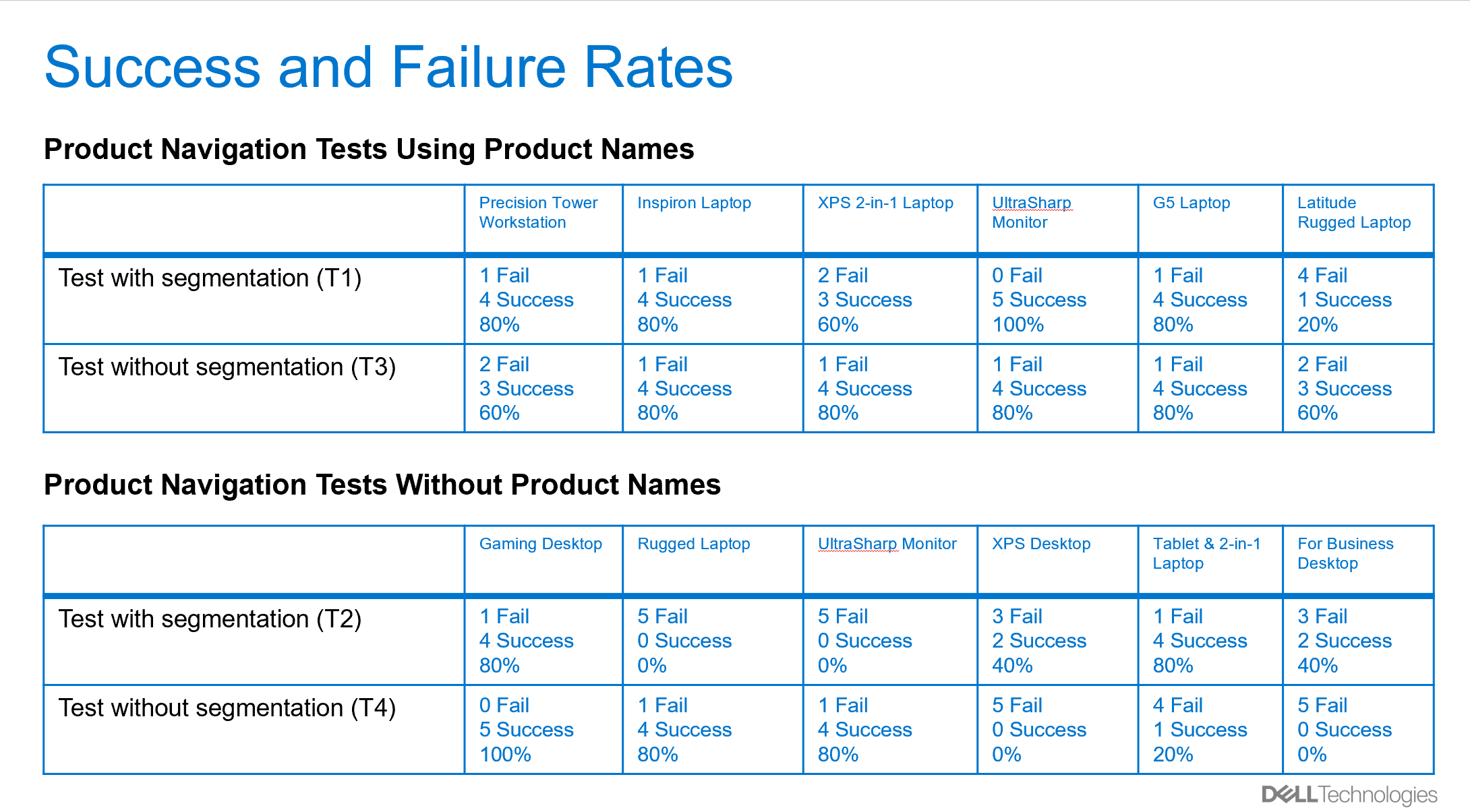 After careful analysis, research, and building an effective taxonomy system that wasn’t reliant on segmentation, my team recommended that segmentation be removed from the entire Dell ecosystem. We got approval, and the move toward zero segmentation was a big step forward for site-wide convergence and unification. Initial data collected since removing segmentation has indicated slight increases in navigational engagement, and no lift in negative responses such as abandonment.