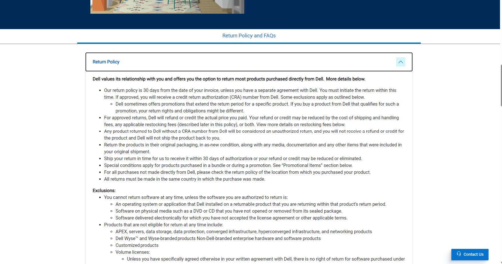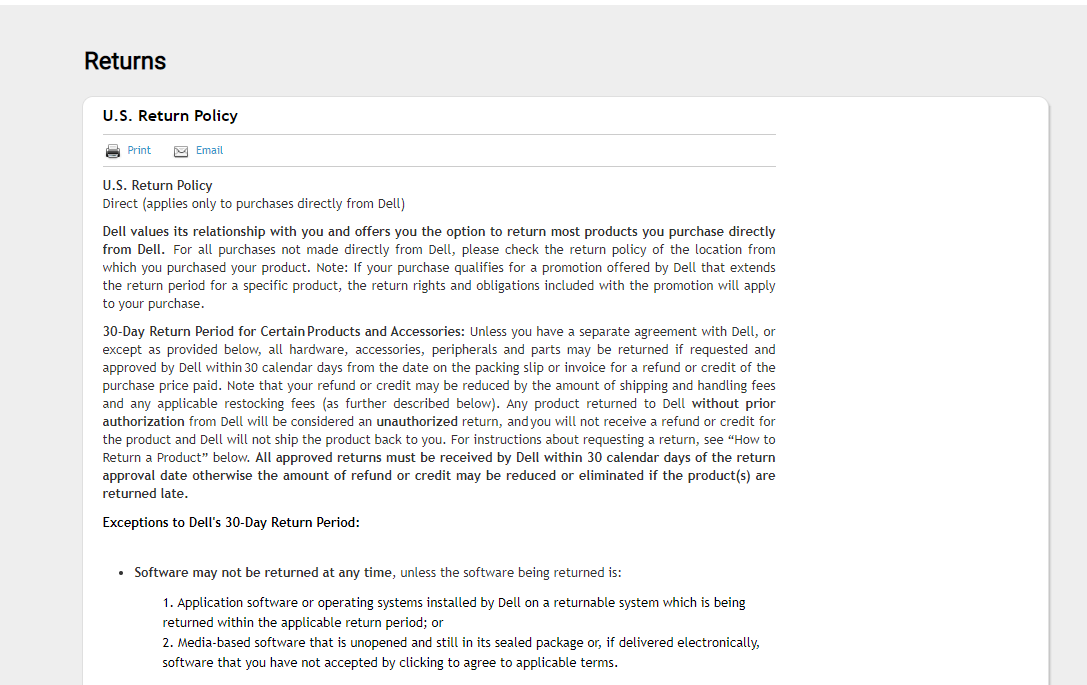 Hidden behind a footer link and an additional landing page link, users experienced significant difficulty locating Dell’s return policy online.